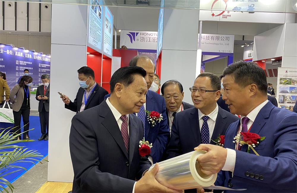 11.3日上午中国轻工业联合会张崇和会长出席开幕式并组织参加会议的代表参观了展会。在4号展馆内张崇和会长亲临双星新材展位,对我司的光学级薄膜、环保新能源材料等产品进行详细了解,并关切地询问了我司生产和企业发展情况。