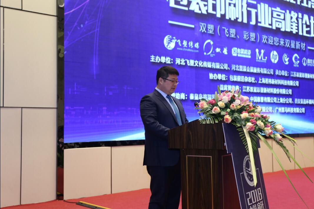12月7日,在宿迁双星国际酒店,精英荟萃,热闹非凡,由江苏双星彩塑新材料股份有限公司、飞塑资讯网合力承办、《包装前沿》杂志社及上海若祎新材料科技有限公司协办的“2018功能性薄膜暨包装印刷行业高峰论坛”在宿迁隆重召开。