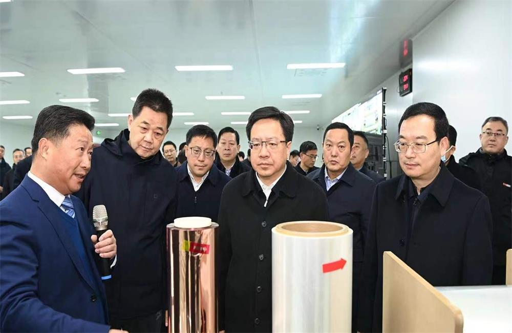 一月四日上午8:50,宿迁市委书记陈忠伟,市委副书记、市长刘浩等一行领导率全市重大项目现场观摩团走进双星新材,现场观摩了精密涂布深加工项目的生产运营情况。