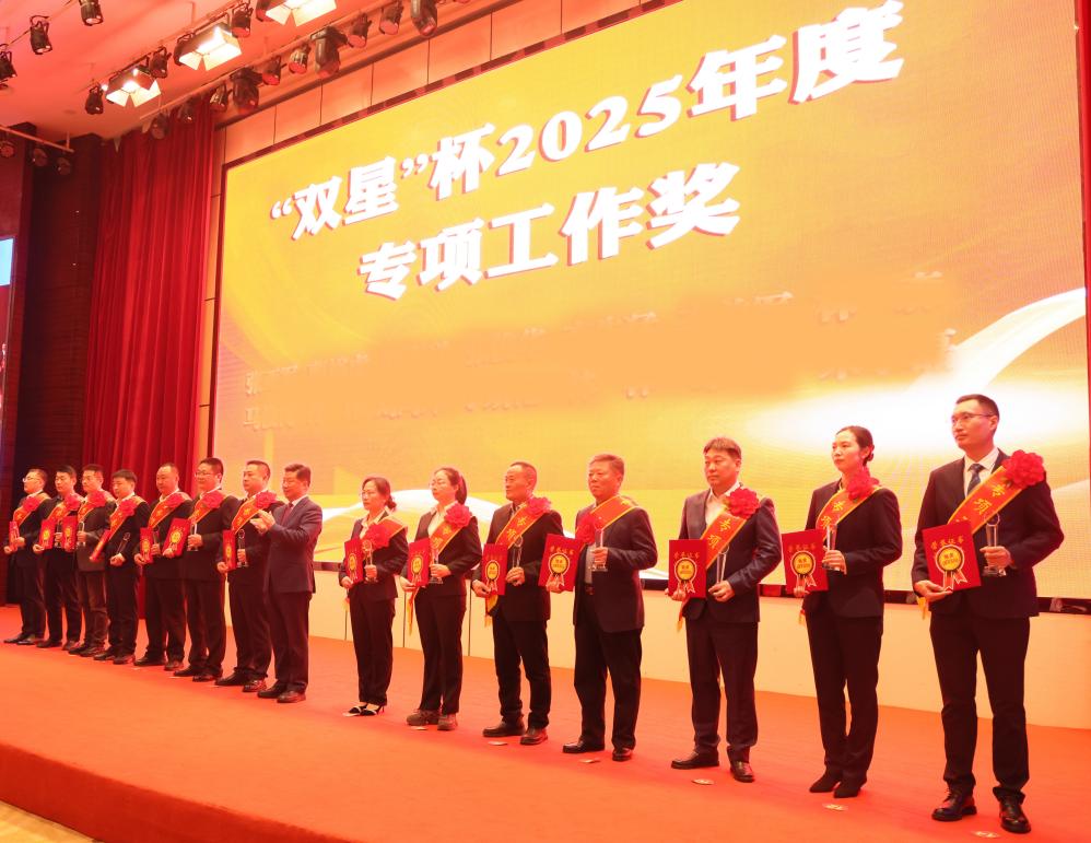 2月15日上午,双星新材召开2025年度总结表彰暨2026年目标签状大会,回顾“十四五”发展历程,全面总结2025年工作,科学谋划“十五五”发展蓝图,深入分析当前发展形势,统筹部署2026年重点任务,动员全体员工进一步解放思想,开拓创新,奋力推动企业高质量发展!双星新材董事长吴培服、总经理吴迪及全体领导班子成员出席会议,总经理吴迪主持会议。