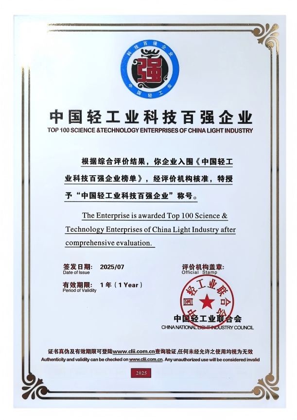 双星新材入选“中国轻工业科技百强企业”榜单