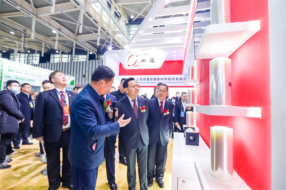 2.25日上午中国轻工业联合会张崇和会长出席开幕式并宣布展会开幕。在6号展馆内张崇和会长亲临双星新材展位,对我司的光学级薄膜、环保新能源材料、复合铜箔等多项最新技术产品进行详细了解,并关切地询问了我公司生产和企业发展情况。