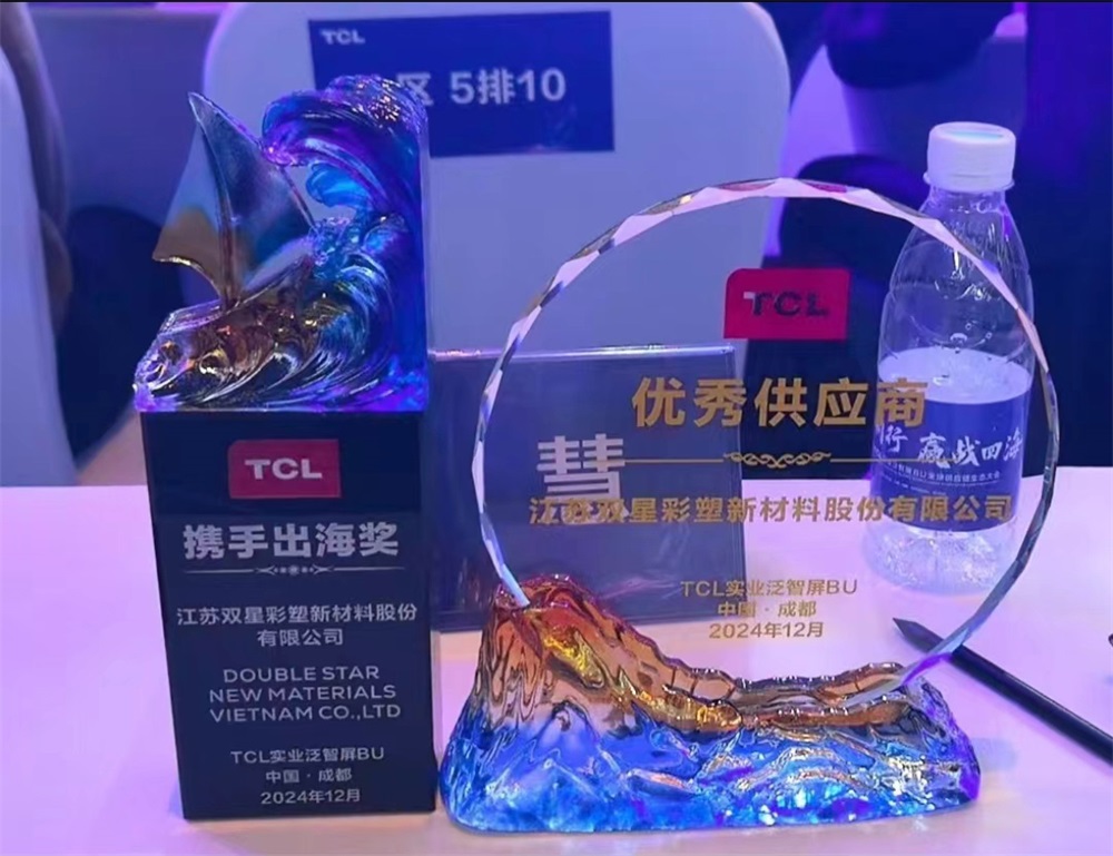 2024年12月6日,在TCL“聚势同行,赢战四海”2024年TCL实业泛智屏BU全球供应链生态大会,双星新材在贵司供应商年度评价中,被评为“携手出海奖”、“优秀供应商”。