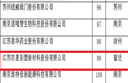 10月26日,“2021‘苏科情’创新论坛”在苏州举行。论坛期间,江苏省科技发展战略研究院、省科技情报研究所向社会发布了“2021江苏省百强创新型企业”名单,江苏双星彩塑新材料股份有限公司荣列榜单。