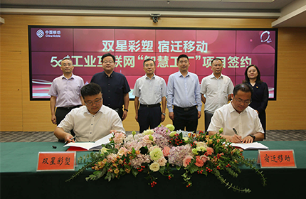 9月8日上午,江苏双星彩塑新材料股份有限公司与宿迁移动通信有限公司举行5G+智慧工厂项目合作签约仪式,在拉开全市5G工业互联网应用序幕的同时,也为双星新材智慧园区的建设按下了加速键。市工信局王瑞局长、双星新材副总经理吴迪、宿迁移动总经理徐星宇等相关领导和人员也一起见证了这个高光时刻。一个基于5G技术的“智慧工厂”正一步步向我们“走”来。