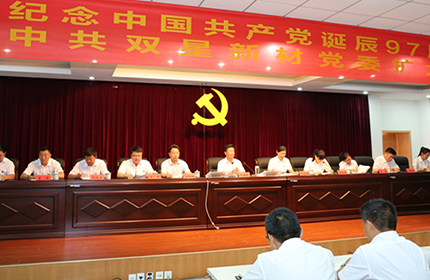 为隆重纪念中国共产党诞辰97周年,巩固落实保持党员先进性教育活动成果,激发全公司广大党员以更加饱满的热情投入到管理经营生产工作中,促进公司又快又好发展。七月一日公司领导组织全体党员干部和受聘人员召开中共双星新材党委扩大会议。 会议中表彰宣传一批先进典型,对全公司涌现出的优秀党员干部和员工进行了表彰奖励。通过树立榜样、激励先进、优秀党员代表发言等多种形式营造“学习先进、争当先进”的浓厚氛围,充分发挥共产党员的先锋模范作用和基层党组织的战斗堡垒作用,为公司可持续发展提供坚强的组织保证。 吴书记在会议中也明确指
