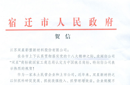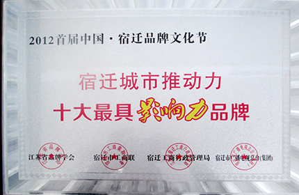 12年8月23日,由江苏省品牌学会、宿迁市工商联、宿迁工商行政管理局及宿迁市广播电视总台(集团)联合共同举办的“2012首届中国?宿迁品牌文化节”,公司“双星”品牌被评为“宿迁市城市推动力十大最具影响力品牌”。