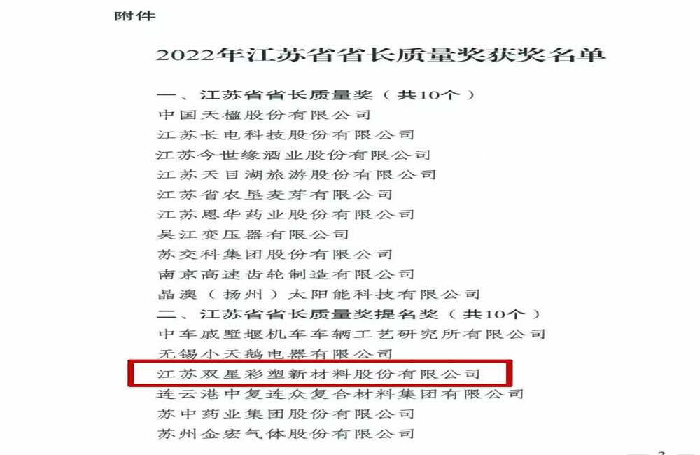 双星彩塑上榜!荣获省长质量奖提名奖